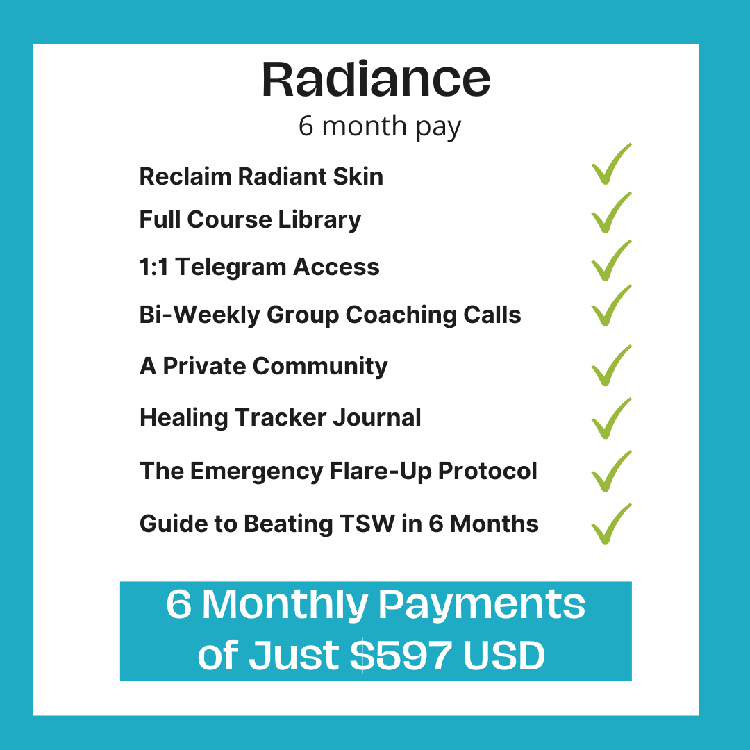 I’ve been eczema-free for over 5 years - not because I found a magic cream, but because I followed the exact method I now teach inside Radiance.